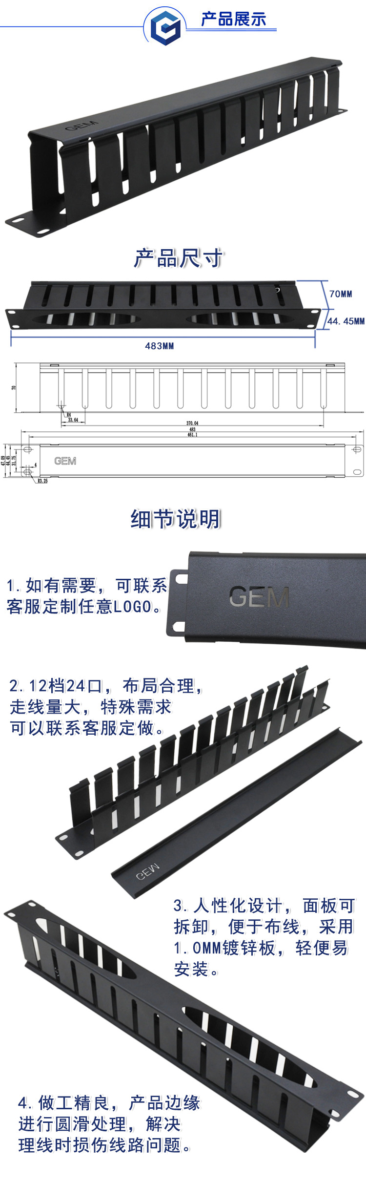 尺寸:483mm*44.45mm*70mm;
